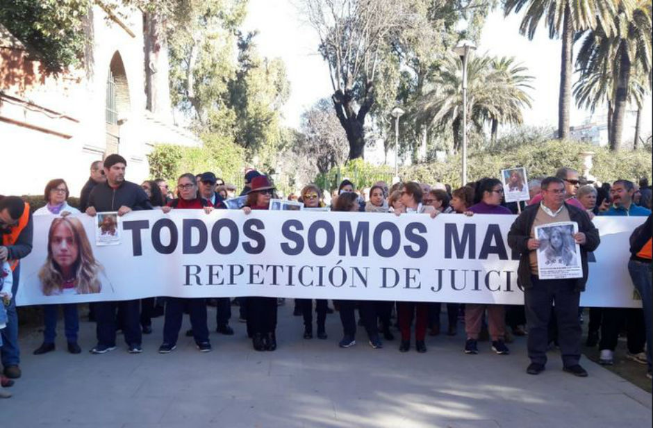 Los padres de la joven, Antonio del Castillo y Eva Casanueva, y el abuelo, José Antonio Casanueva, han encabezado una marcha, que ha comenzado a las 12:00 horas de este sábado en los jardines de Murillo y ha concluido en la plaza de San Francisco, portando una pancarta en la que se podía leer ‘Todos somos Marta. Repetición del juicio’.