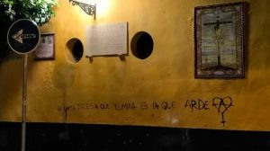 Las redes delatan a las autoras de la pintada en la Iglesia de San Martín