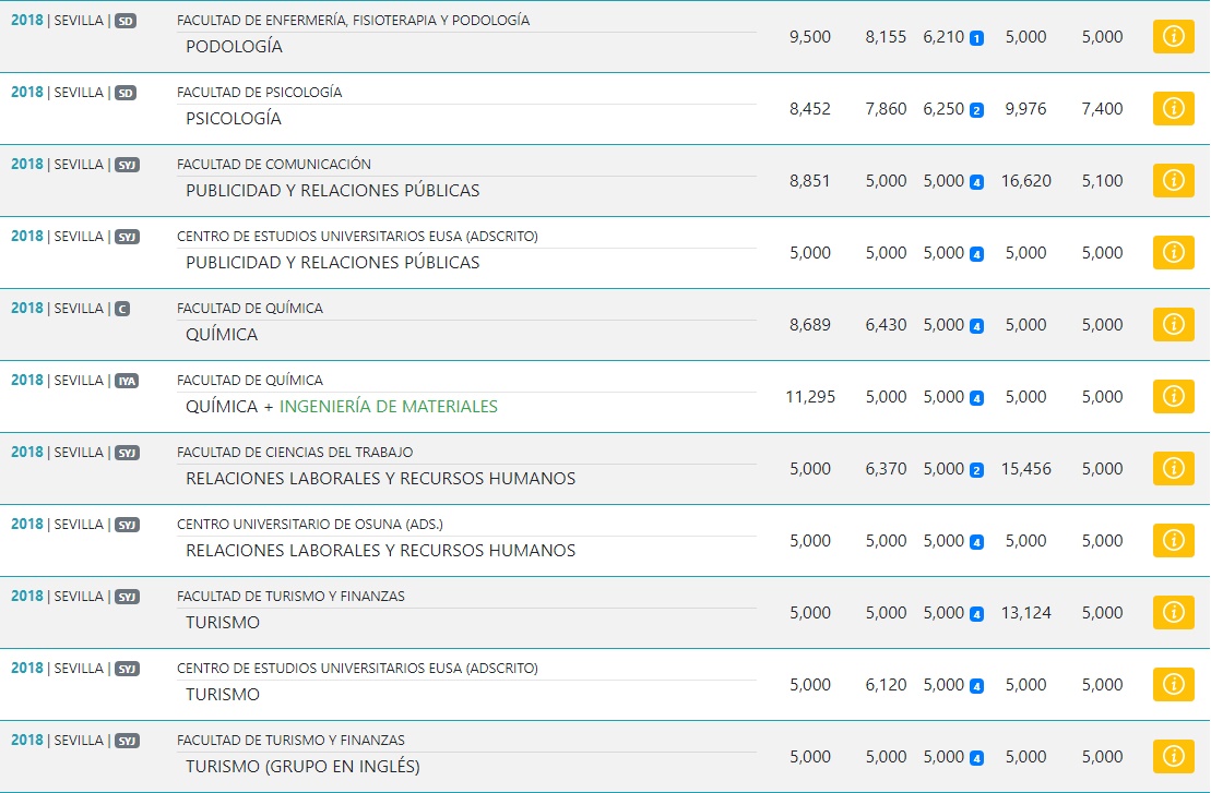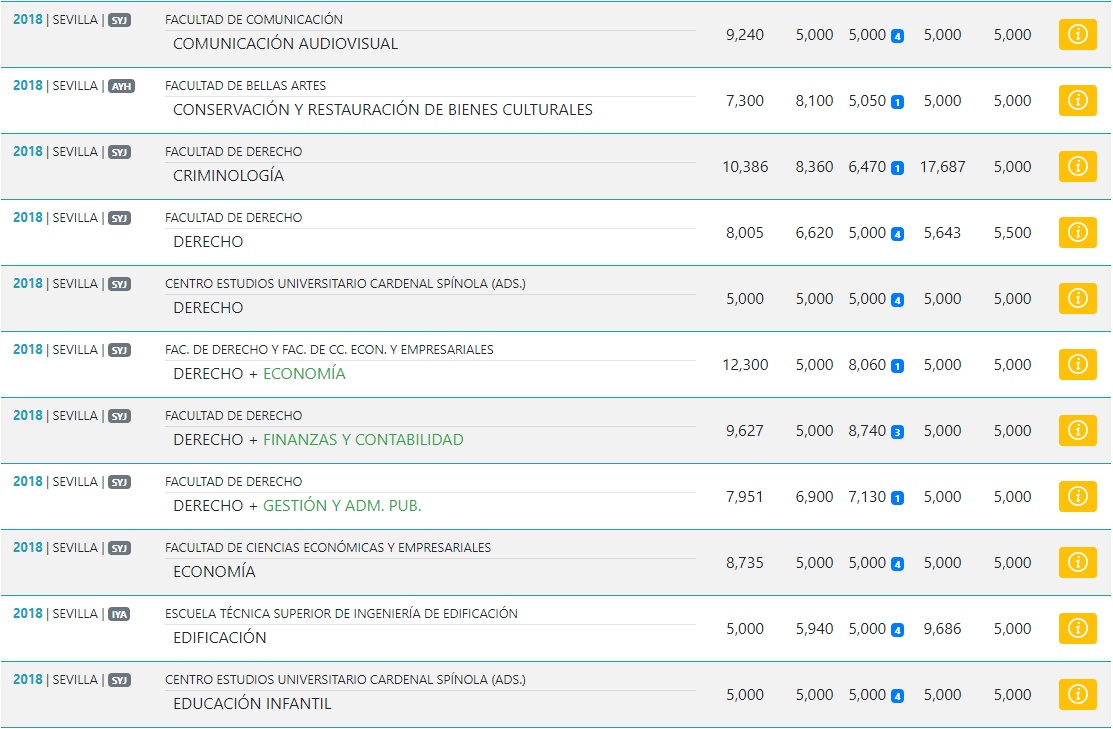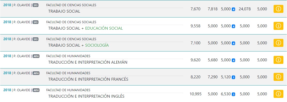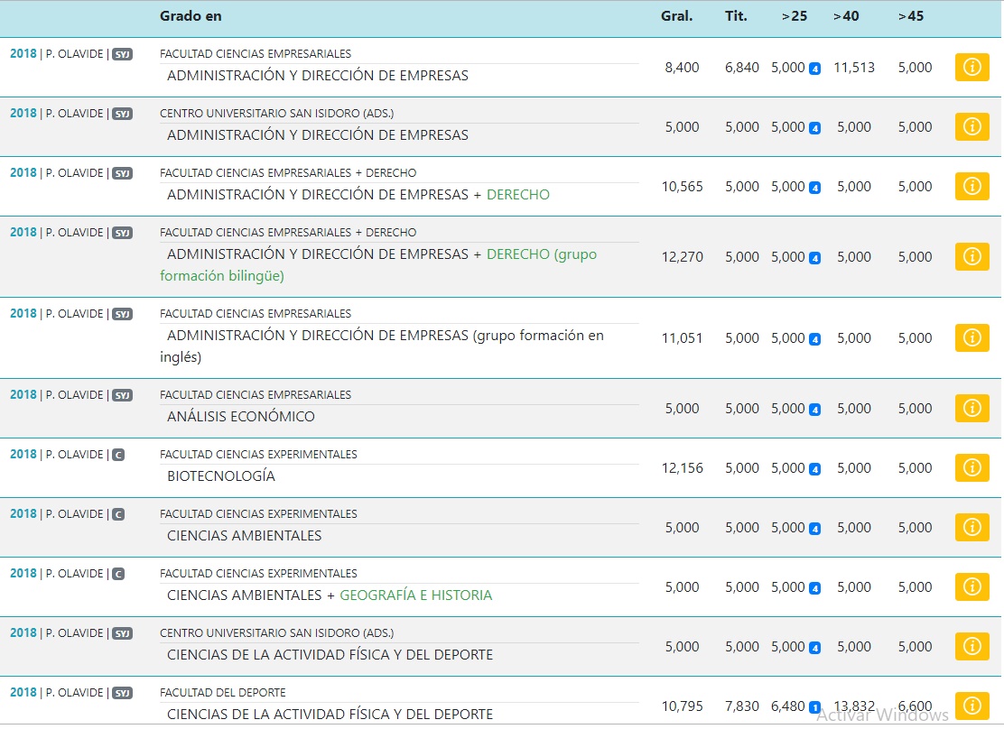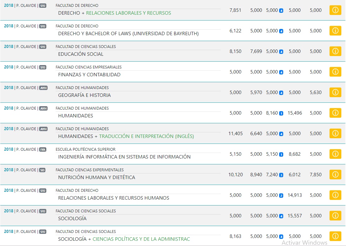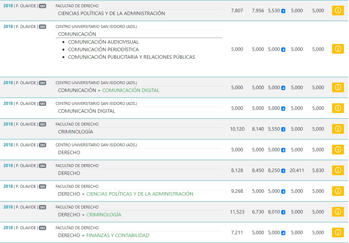Además de estas carreras que oferta la US, la universidad Pablo de Olavide tiene 39 carreras y estas son sus notas de corte.