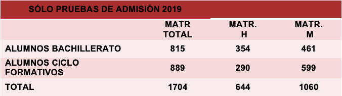 En datos absolutos, de los 7.558 estudiantes matriculados en las Pruebas de Acceso y Admisión han conseguido superar la prueba un total de 7.001, mientras que 21 no se han presentado. Sólo la Prueba de Admisión fue realizada por 1.704 estudiantes.