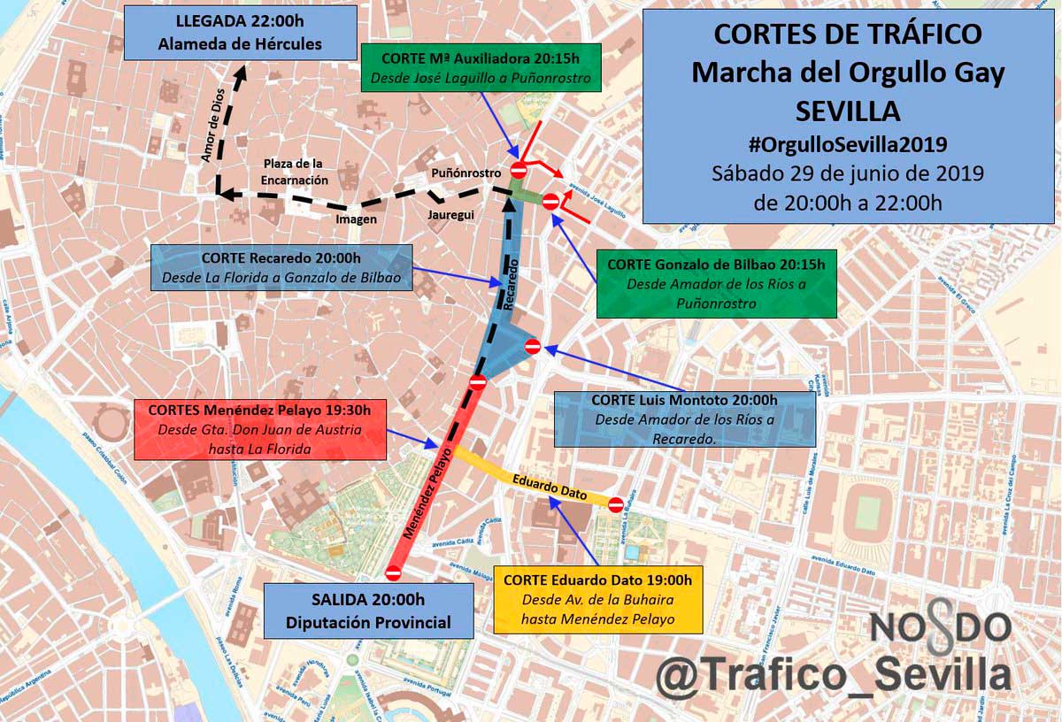 La Marcha del Orgullo LGTBI que tendrá lugar el próximo sábado 29, de 20:00h a 22:00 horas, dejará en Sevilla diferentes cortes de tráfico. Consulta aquí los horarios y qué calles se verán afectadas.