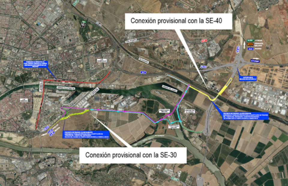 Se plantean dos conexiones provisionales: por un lado, se realiza la conexión del viario del Puerto de Sevilla con la autovía SE-40 en el final del tramo Alcalá de Guadaira-Dos Hermanas y, por otro, se conecta de forma directa el ramal de salida del enlace de Puerto Oeste que sale de la calzada izquierda de la SE-30 con la carretera de la esclusa del Puerto de Sevilla.
