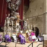 El arzobispo tuvo palabras de recuerdo para los fallecidos desde el inicio de la crisis sanitaria, «por todos ellos y por nuestros ancianos, que tanto han trabajado por una España mejor y a los que tanto debemos, hemos levantado los brazos al cielo, pidiendo que cese tanto sufrimiento», dijo. «Queridos familiares, esposos, esposas, hijos, padres y hermanos de todos los sevillanos fallecidos en nuestra Archidiócesis a causa de la epidemia y que hoy lloráis su muerte: os manifiesto la condolencia más sincera de la Iglesia en Sevilla, de sus obispos, sacerdotes, religiosos y laicos».