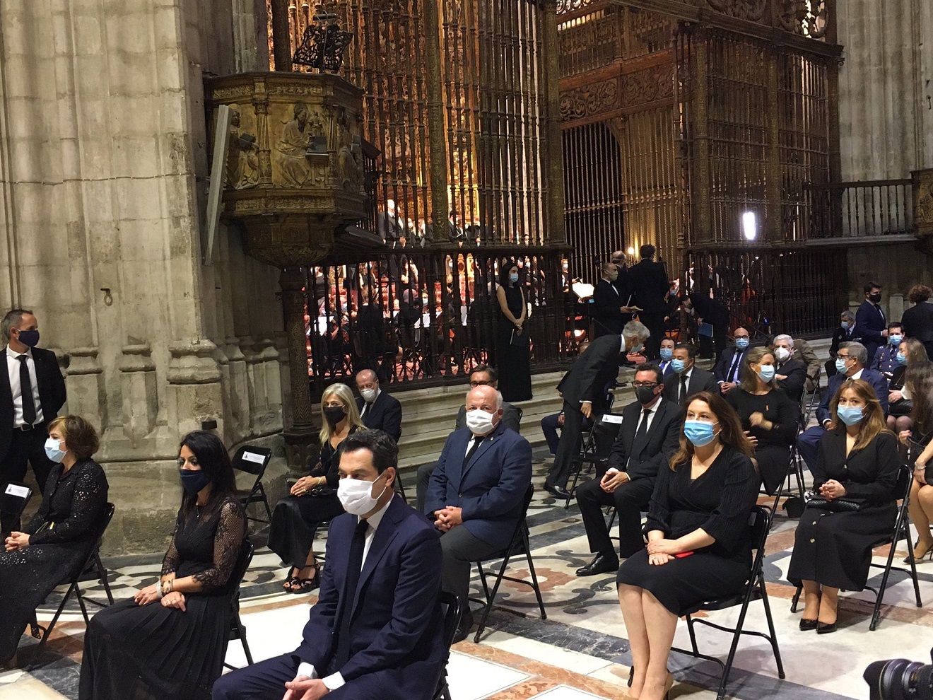 A la misa asistieron los miembros del Gobierno andaluz, el alcalde de Sevilla, Juan Espadas, Susana Díaz, la delegada del Gobierno en Andalucía, Sandra García, entre otros rostros políticos. Los asistentes acudieron con mascarilla y estaban separados en sillas. El coro de la Universidad de Sevilla y la Orquesta Sinfónica Hispalense, interpretaron la Misa de Réquiem de Mozart.