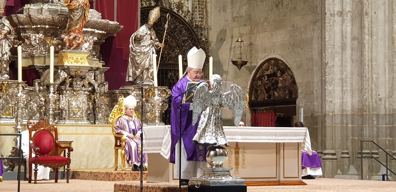 El arzobispo tuvo palabras de recuerdo para los fallecidos desde el inicio de la crisis sanitaria, «por todos ellos y por nuestros ancianos, que tanto han trabajado por una España mejor y a los que tanto debemos, hemos levantado los brazos al cielo, pidiendo que cese tanto sufrimiento», dijo. «Queridos familiares, esposos, esposas, hijos, padres y hermanos de todos los sevillanos fallecidos en nuestra Archidiócesis a causa de la epidemia y que hoy lloráis su muerte: os manifiesto la condolencia más sincera de la Iglesia en Sevilla, de sus obispos, sacerdotes, religiosos y laicos».