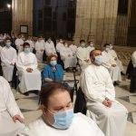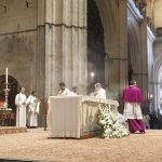 La eucaristía ha estado presidida por el arzobispo de Sevilla, Juan José Asenjo, y ha dado comienzo a las 10:00 horas de la mañana en el Altar del Jubileo. 611 personas han podido acceder a la Catedral. Tras la ceremonia, la procesión claustral ha discurrido con normalidad por las naves de la Catedral de Sevilla. El arzobispo iba escoltado por miembros de Cáritas y sanitarios.