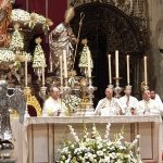 Tras recorrer el interior, el arzobispo de Sevilla ha llegado a un pequeño altar montado en la puerta de la Asunción para bendecir a todo el pueblo de Sevilla. A la celebración han asistido representaciones de la sociedad civil, militar y académica. Por otro lado, las hermandades, han estado representadas por el Consejo de Cofradías y la hermandad Sacramental del Sagrario.