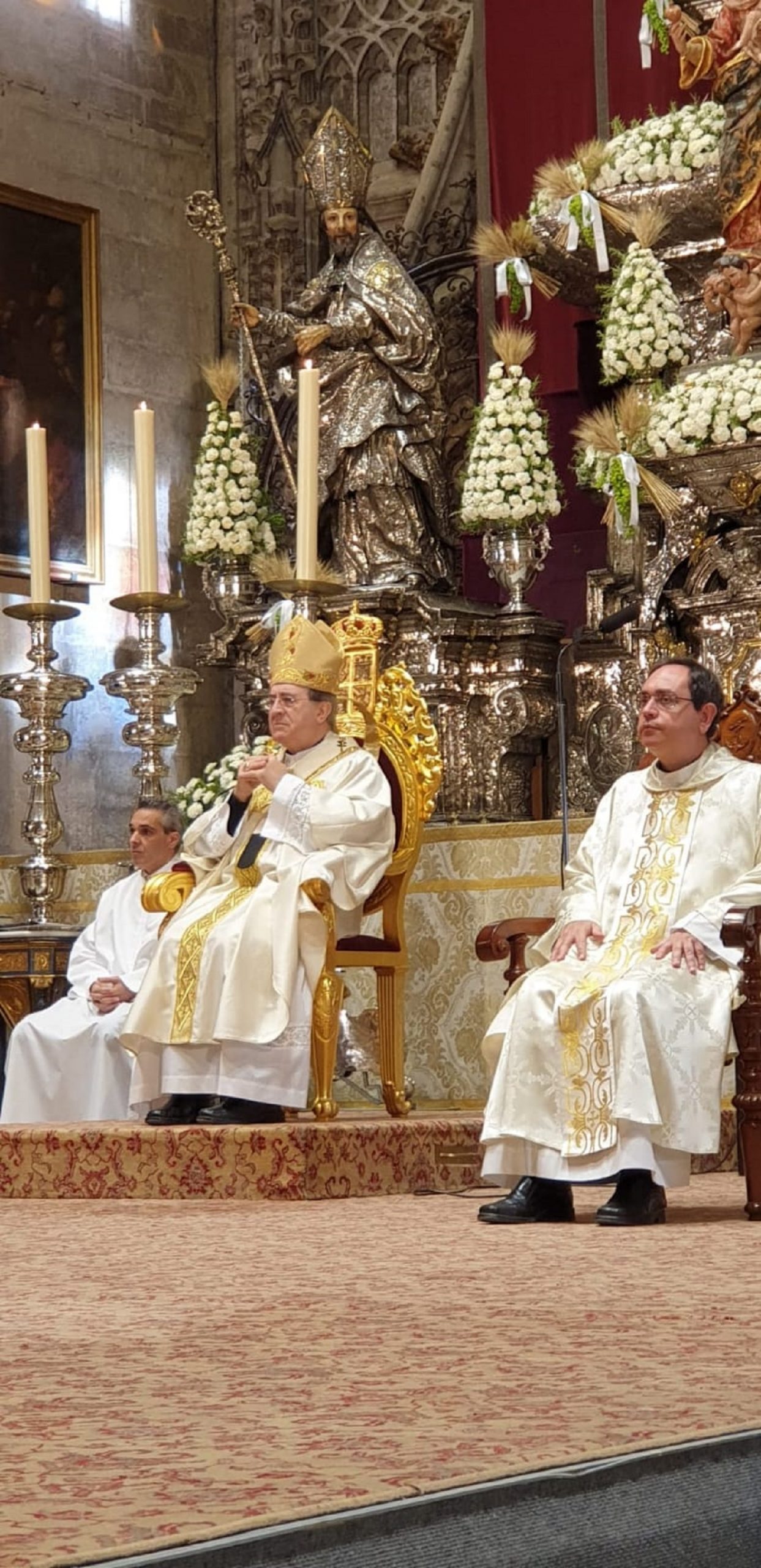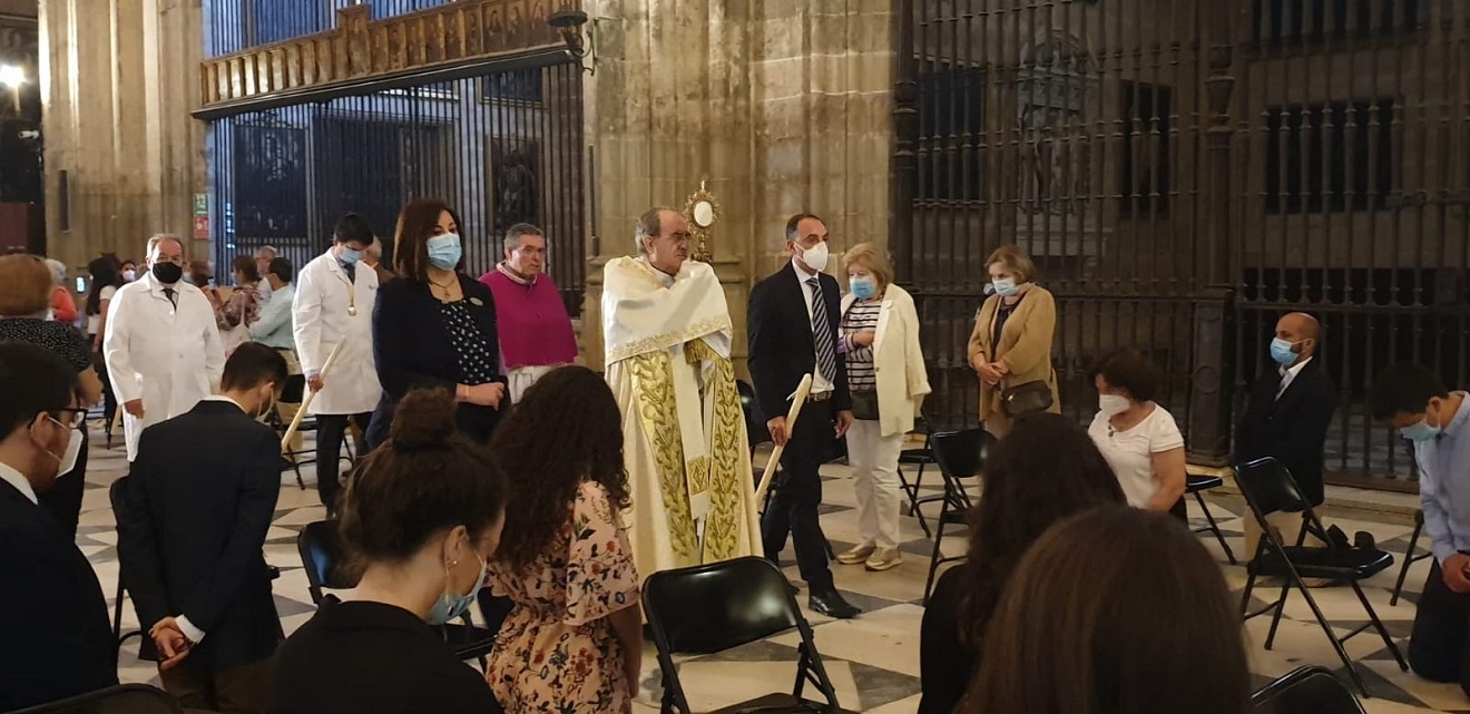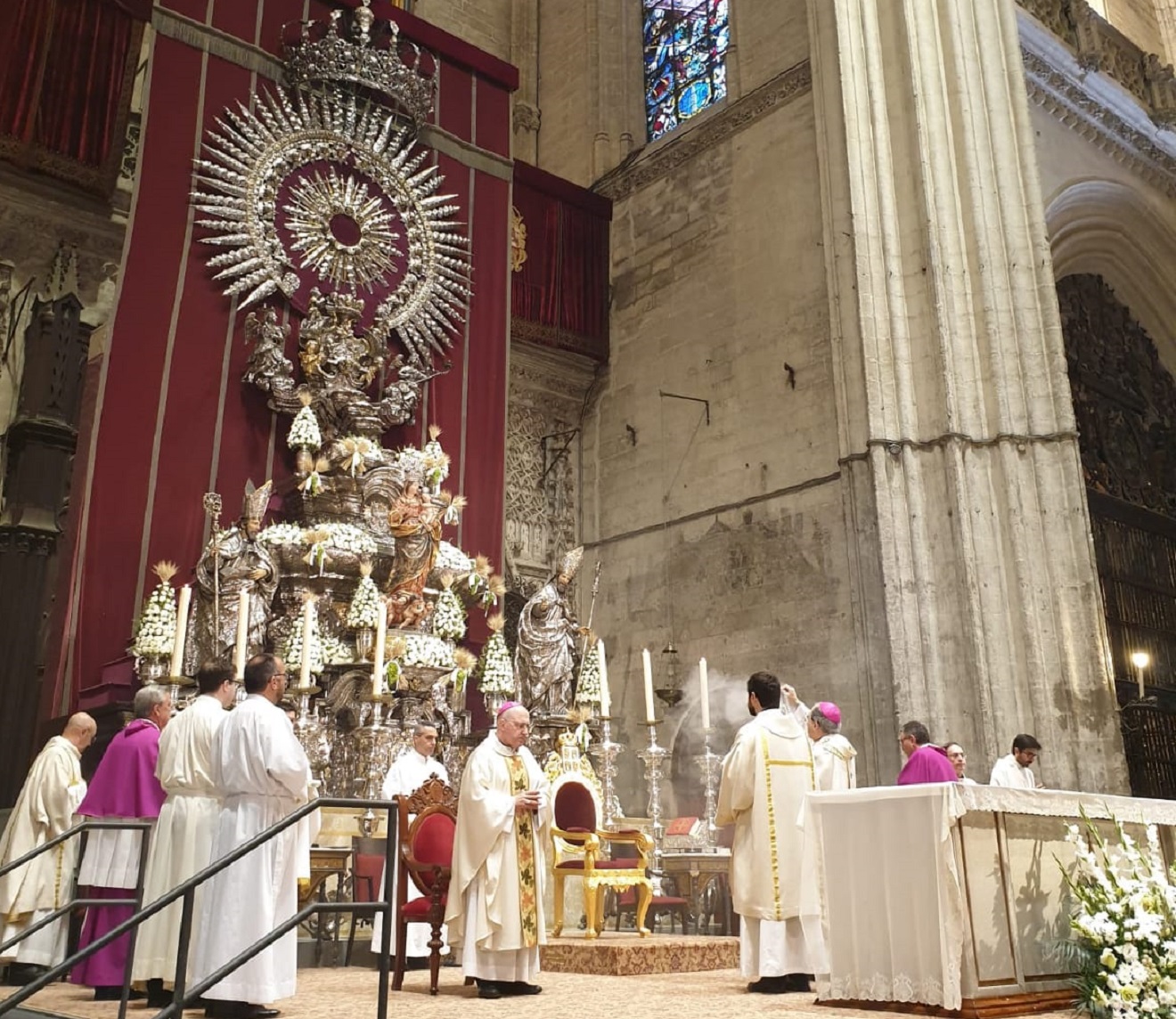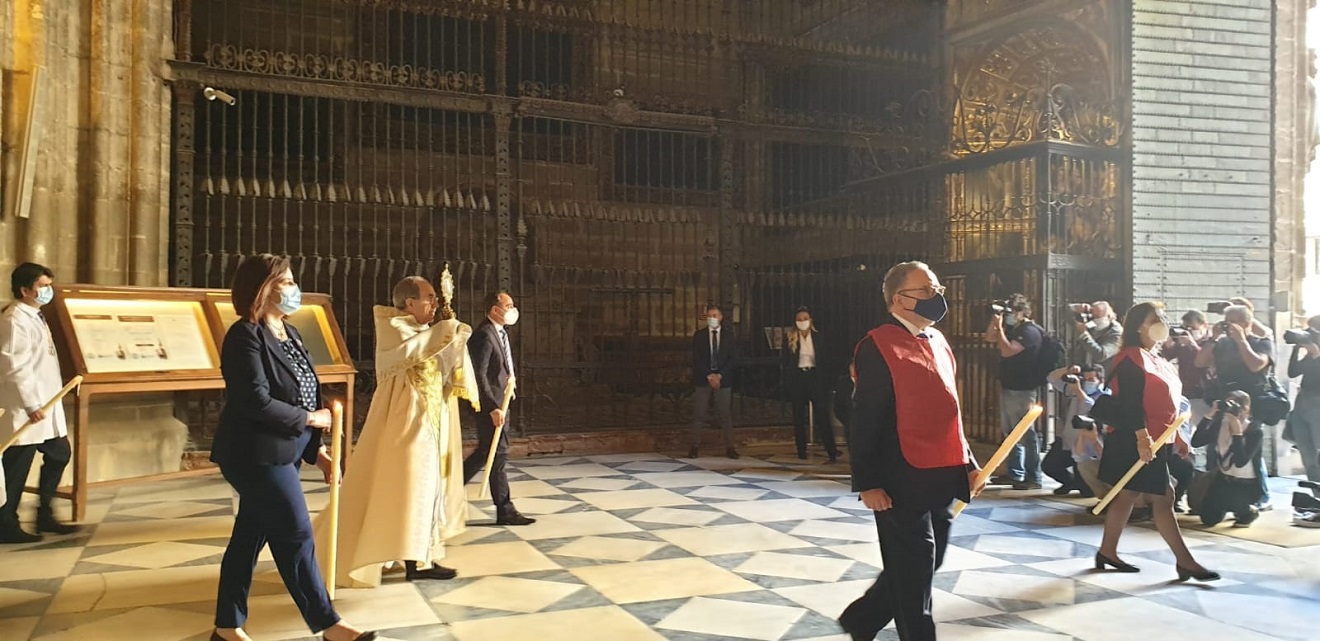 Tras recorrer el interior, el arzobispo de Sevilla ha llegado a un pequeño altar montado en la puerta de la Asunción para bendecir a todo el pueblo de Sevilla. A la celebración han asistido representaciones de la sociedad civil, militar y académica. Por otro lado, las hermandades, han estado representadas por el Consejo de Cofradías y la hermandad Sacramental del Sagrario.