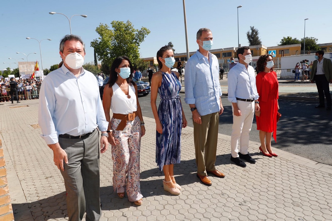 Los Reyes de España han llegado a las once en punto de la mañana y han estado acompañados de la ministra, María Jesús Montero. Además, han estado presentes el presidente de la Junta de Andalucía, Juan Manuel Moreno, la delegada del gobierno, Sandra García, la presidenta del Parlamento de Andalucía, Rocío Busquets y la consejera de igualdad, Rocío Ruiz.