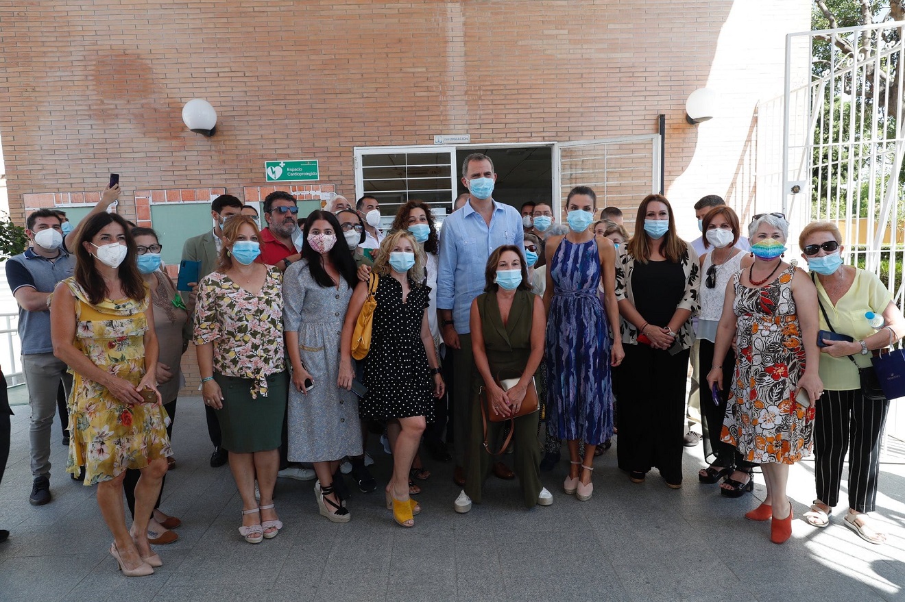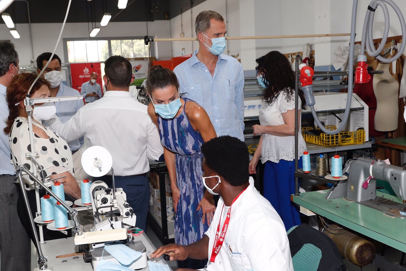 Los Reyes han escuchado las explicaciones de la actividad de la Comisión de Emergencia del Polígono Sur de Sevilla, constituida para hacer frente a la situación provocada por el COVID-19 y han visitado  el Centro Cívico ‘El Esqueleto’ y el Centro Social de la Fundación Don Bosco.