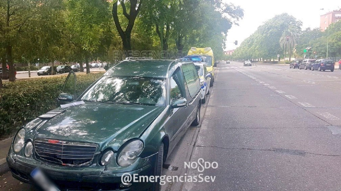 El accidente ha tenido lugar sobre 13:15 horas de este martes, cuando el coche fúnebre, colisionó en alcance con dos vehículos que se encontraban parados en un semáforo de la Ronda del Tamarguillo.