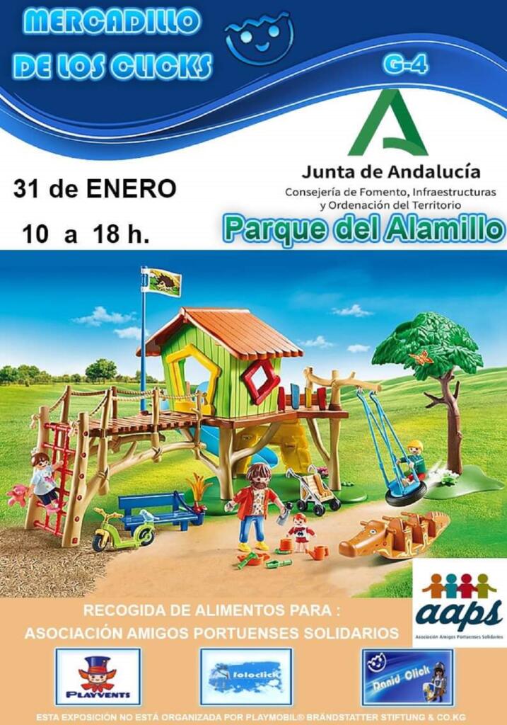 El próximo domingo 31 de enero se celebrará en el Parque Metropolitano del Alamillo un mercadillo solidario de clicks de Playmobil, durante el cual se recogerán alimentos no perecederos que serán posteriormente entregados a familias que se encuentran en situación de precariedad.