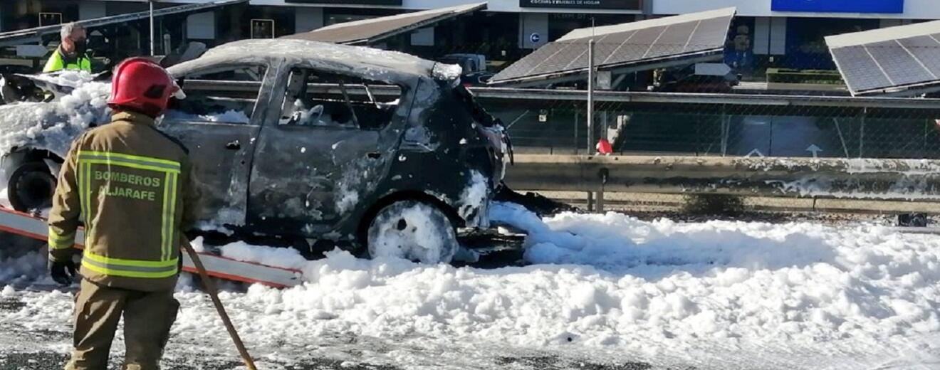 Incendiado un vehículo tras un siniestro en la SE-30 a la altura de Camas