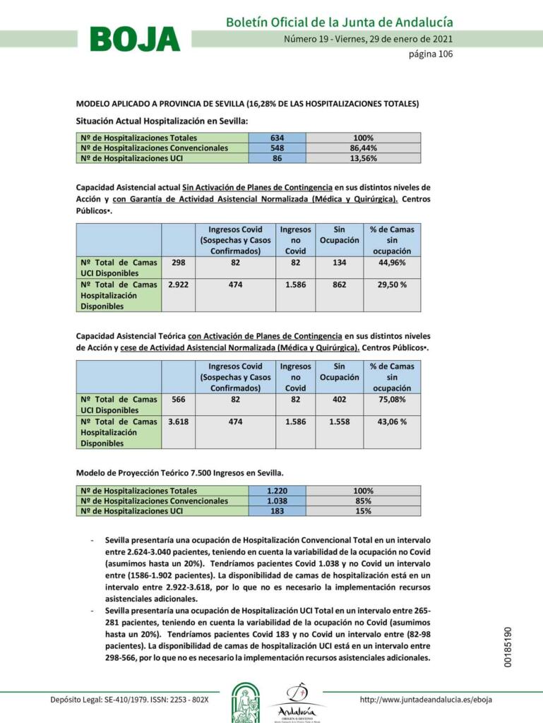 El Boletín Oficial de la Junta de Andalucía recoge los datos estimados por la aplicación del Plan 7500, iniciativa activada por la Junta de Andalucía para la contención de la pandemia. En este plan se considera también la redistribución de pacientes contagiados por coronavirus entre sus provincias para frenar la presión hospitalaria.