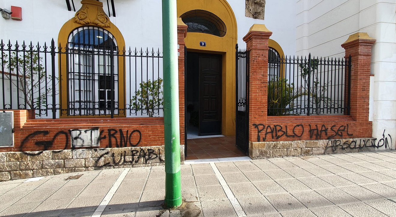 Estas pintadas en las que se puede leer «Gobierno culpable» y «Pablo Hasel absolución», han sido denunciadas por la secretaria general del PSOE de Sevilla y diputada socialista en el Parlamento de Andalucía, Verónica Pérez, en su cuenta de Twitter.