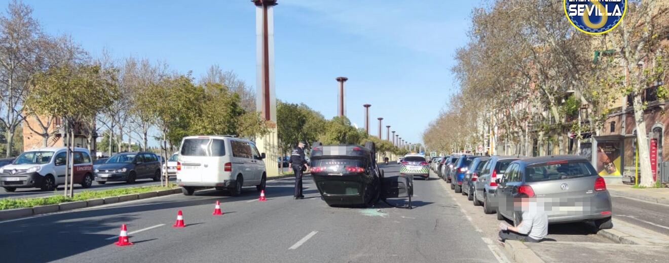 Un vehículo vuelca en la calle Torneo tras chocar con dos coches estacionados