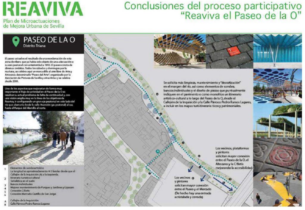 Esta reordenación del Paseo de la O, aprobada por el Pleno del Ayuntamiento de Sevilla el pasado mes de noviembre, tiene como objetivos generar una conexión peatonal accesible entre el nivel inferior y superior a la calle Betis que conecte con la plataforma y la rampa ya existente. Además, se dotará a esta orilla del río de espacios de sombra así como la renovación del mobiliario urbano y las señalizaciones.