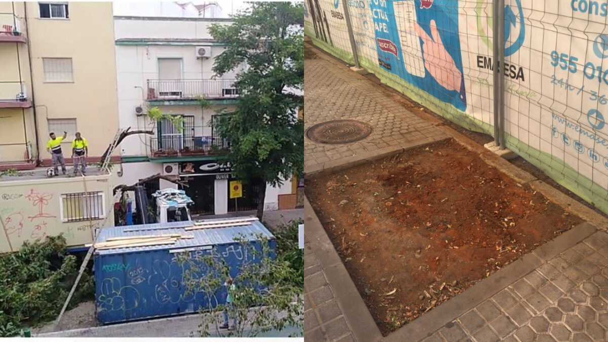 Imágenes de las podas que se han producido durante la pasada semana en la Cruz Roja y las calles adyacentes. SA
