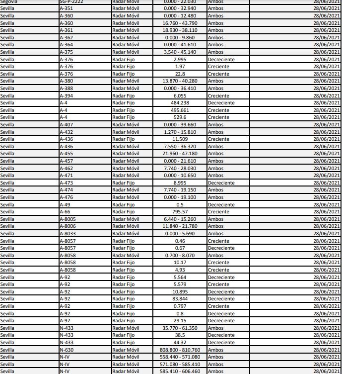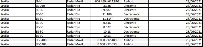 En las carreteras sevillanas se cuenta ya con 68 radares, fijos y móviles. Esta es la lista: