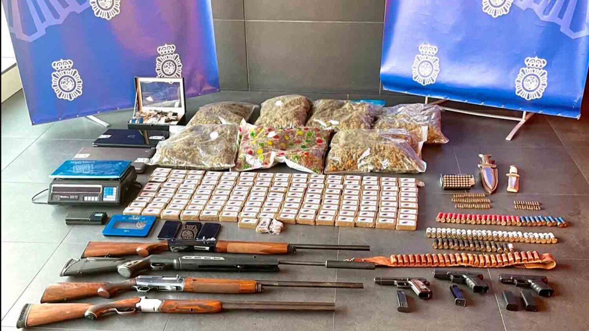 Con este operativo se han desarticulado tres cultivos indoor e intervenidos 84 kilogramos de marihuana, 14 kilogramos de hachís, tres pistolas, (dos del calibre 9mm y una detonadora), tres escopetas del calibre 12, una carabina de calibre 6.35mm, dos puñales de grandes dimensiones, cinco vehículos y una motocicleta, así como los diferentes útiles necesarios para la venta, distribución, el cultivo de la marihuana y la venta de las diferentes sustancias.