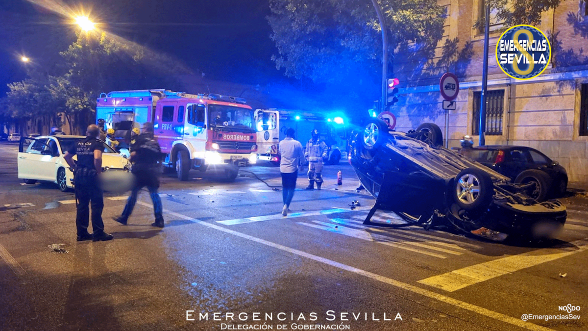 Tres personas han resultado heridas en un aparatoso accidente en la avenida de Las Razas al volcar un coche en un giro indebido desde el Puente de las Delicias, según ha informado Emergencias Sevilla. Tras una colisión el turismo volcó.