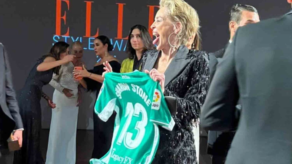 Admirar los monumentos de Sevilla no es lo único que Sharon Stone ha hecho estos días en Sevilla. La actriz estadounidense se encuentra en la capital por a la entrega de los premios Style Awards de la revista ELLE que se celebraron este jueves. Stone también se ha dejado ver junto a Joaquín y Marc Bartra, jugadores del Betis, portando una camiseta con su nombre. Esta fue entregada por el capitán y el defensa del equipo verdiblanco en la gala de los premios, de los que ambos eran embajadores y a la que acudieron con sus respectivas parejas.