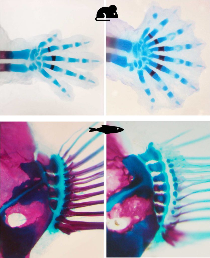 Estos investigadores se plantearon: ¿Qué ocurre si inactivamos el gen Gli3 en peces, los cuales, claramente, no tienen dedos? Para responder a esta pregunta, López-Ríos explica: «Recurrimos a la tecnología CRISPR/Cas9 (Nobel de Química 2019 a Emmanuelle Charpentier y Jennifer Doudna) para eliminar la función del gen Gli3 en pez medaka, un pez de origen japonés y separado evolutivamente de los tetrápodos por más de 400 millones de años de evolución. Sorprendentemente, los peces que carecen de la actividad Gli3 desarrollan alelas mucho más grandes, con muchos más huesos, lo que recuerda a la polidactilia que aparece en ratones y humanos cuando Gli3 no funciona correctamente».