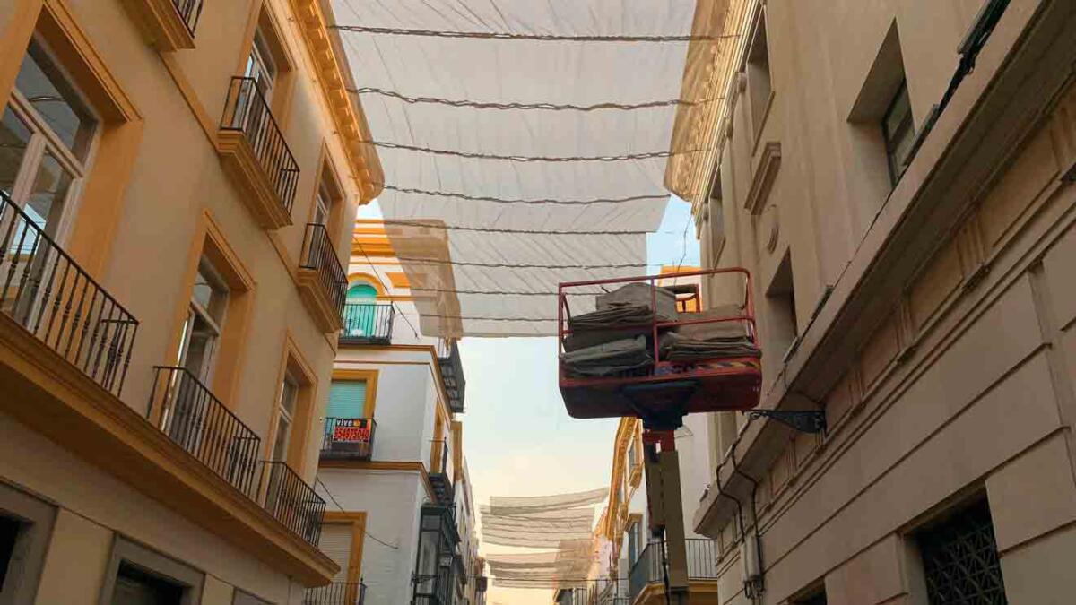 Los toldos se colocarán entre los seis y los doce metros de altura, similar a años anteriores. Además, se retirarán de las fachadas a una distancia aproximada de 75 centímetros.