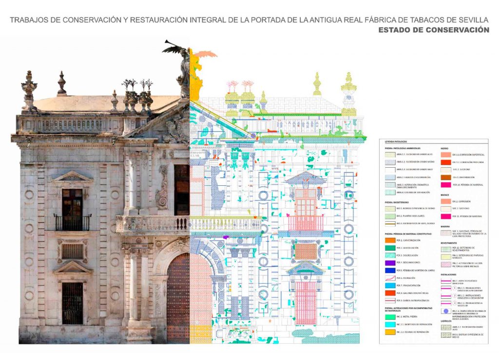 La Universidad de Sevilla (US) empieza el lunes 27, con la instalación de los primeros andamios, la restauración de la portada principal del edificio de la Real Fábrica de Tabacos, que actualmente aloja el Rectorado y las facultades de Filología y Geografía e Historia.