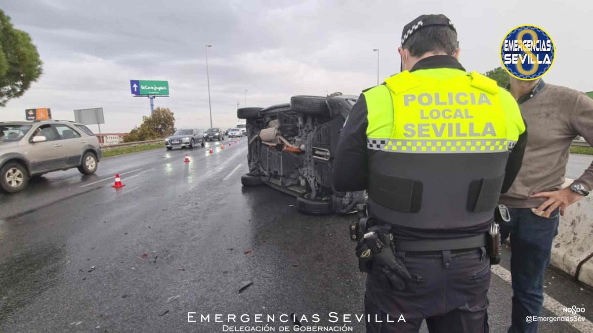 Un vehículo ha volcado en la Ronda Urbana Norte tras un siniestro por alcance en el que estaba implicado otro vehículo. El conductor del coche que ha volcado, de 59 años de edad, ha resultado ileso, al igual que el ocupante del otro vehículo, de 49.