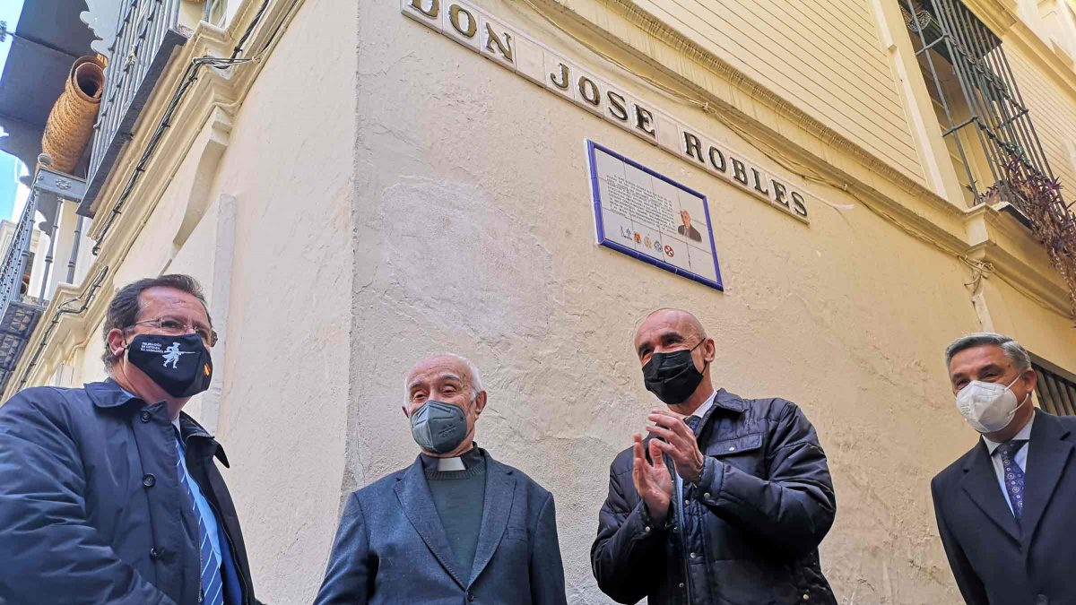 Casi una treintena de personas y entidades han respaldado la iniciativa que impulsaron las tres hermandades de las que José Robles es director espiritual para que este entre en el nomenclátor de la ciudad. La propuesta fue aprobada primero por la Junta Municipal del Distrito Casco Antiguo en mayo de 2021 y ratificada por el Pleno municipal. Además del nombre de la vía, durante el acto también se ha descubierto un azulejo alusivo a este reconocimiento unánime y que el Distrito ha colocado a petición de esas tres hermandades.