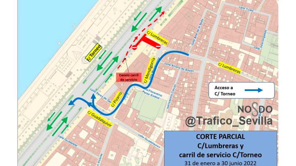En paralelo a estas obras, se iniciarán previsiblemente a final de este mes trabajos correspondientes a la cuarta fase de este proyecto que se desarrollará en la Glorieta Cayetana de Alba pero sin afección alguna al tráfico. Se trata de una actuación que se llevará a cabo en la otra margen de Torneo, en la zona de Lumbreras, con corte de tráfico parcial al final de esta calle y de la vía de servicio. Como itinerario alternativo para la salida del centro, se establece un desvío desde la calle Lumbreras hacia Mendigorría, Pizarro y Guadalquivir para llegar hasta Torneo.
