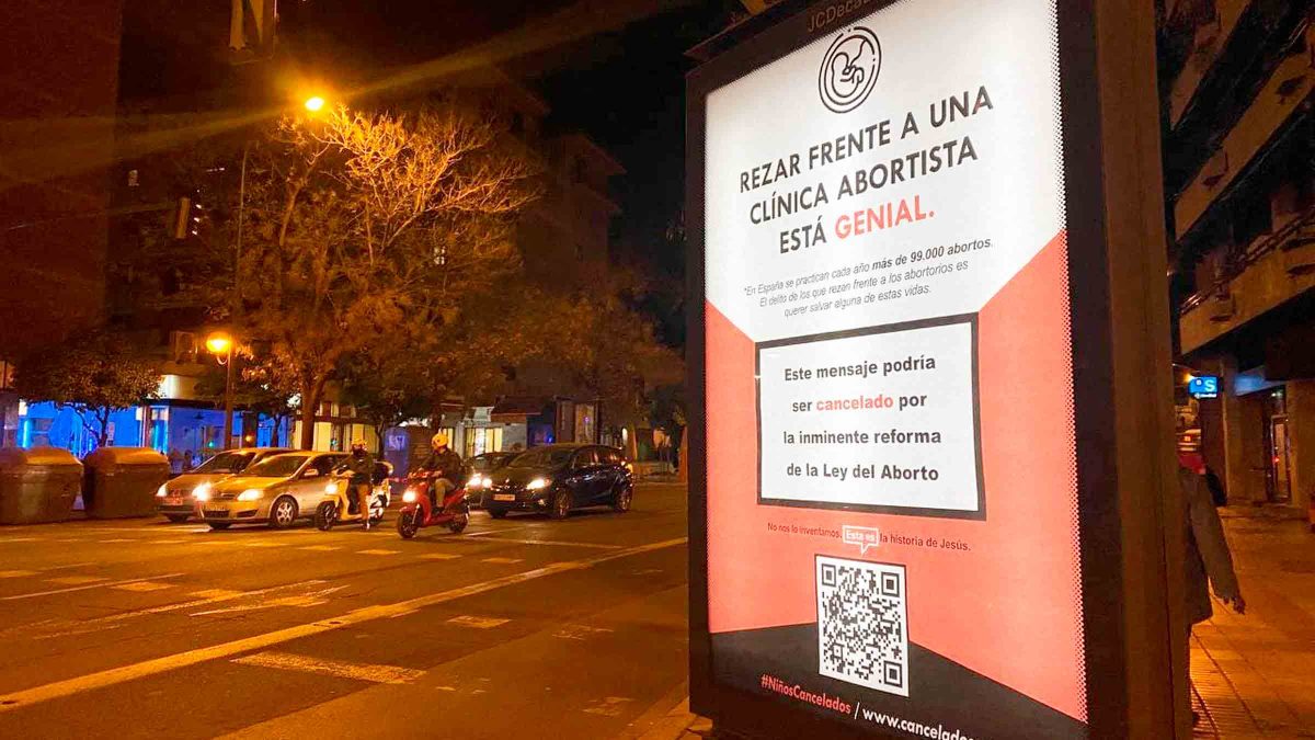 Se trata de una campaña de publicidad que se está realizando en otras ciudades españolas, y que plantea de manera explícita las concentraciones de acoso ante las clínicas donde se practiquen interrupciones voluntarias de embarazos. Una situación que ya se ha denunciado en otras capitales e incluso en algunas se ha procedido a su retirada por parte de la administración local.