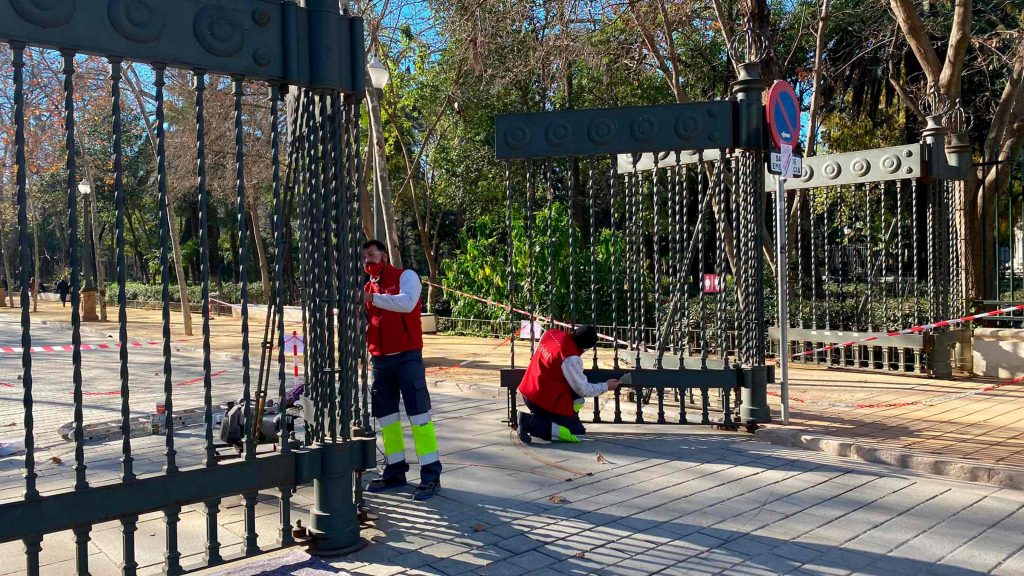 En concreto, los primeros trabajos de mantenimiento se centran en la reparación de la cerrajería artística, con alineación de barrotes, reposición de elementos deteriorados, realización de anclajes, reparación de cierres, limpieza y rascado de óxidos y aplicación de pintura anticorrosiva tipo oxiron gris antracita; la segunda actuación atañe a la reparación de uno de los bancos de mampostería, con la sustitución de los azulejos que se encuentren deteriorados por nuevos de similares características, el saneado de los revestimientos de la base, enfoscado y pintado; y la tercera intervención encomendada por ahora consiste en realizar pruebas de limpieza sobre la balaustrada de piedra del Gran Peatón con distintos métodos y productos de restauración para así determinar cuáles son los más idóneos, al tiempo que han comenzado los trabajos en taller reparar las piezas cerámicas dañadas, rotas o desaparecidas de esta balaustrada.