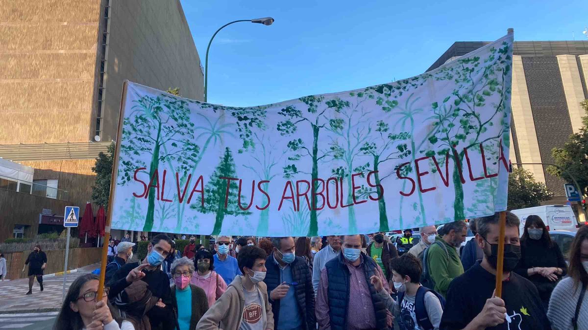 En la tarde del pasado miércoles un grupo de unas 200 personas recorrieron las calles de Sevilla como forma de protesta por la tala de árboles que conllevará la ampliación del recorrido del tranvía. La marcha, convocada por Salva Tus Árboles Sevilla, se inició en la calle Luis Montoto, junto al edificio de El Corte Inglés y siguió por las avenidas Luis de Morales y San Francisco Javier.