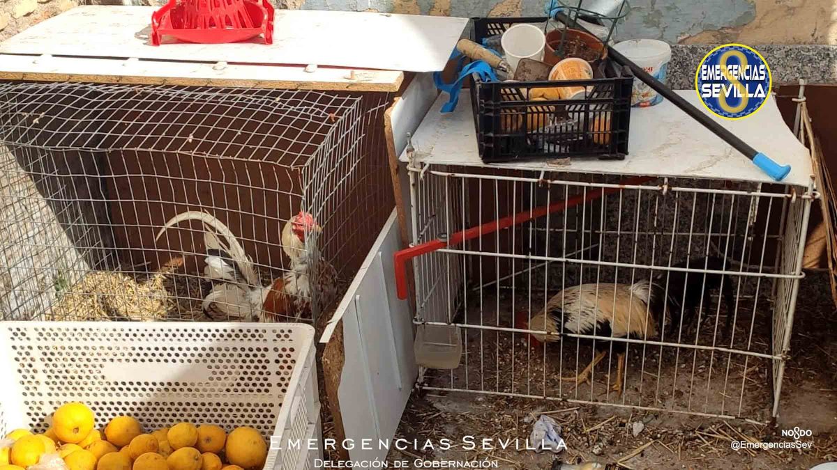 La Policía Local intervino en la jornada del jueves un total de 14 gallos de pelea y 10 jaulas que se encontraban en el patio de un bloque de pisos de Torreblanca, la barriada situada en la periferia sevillana.