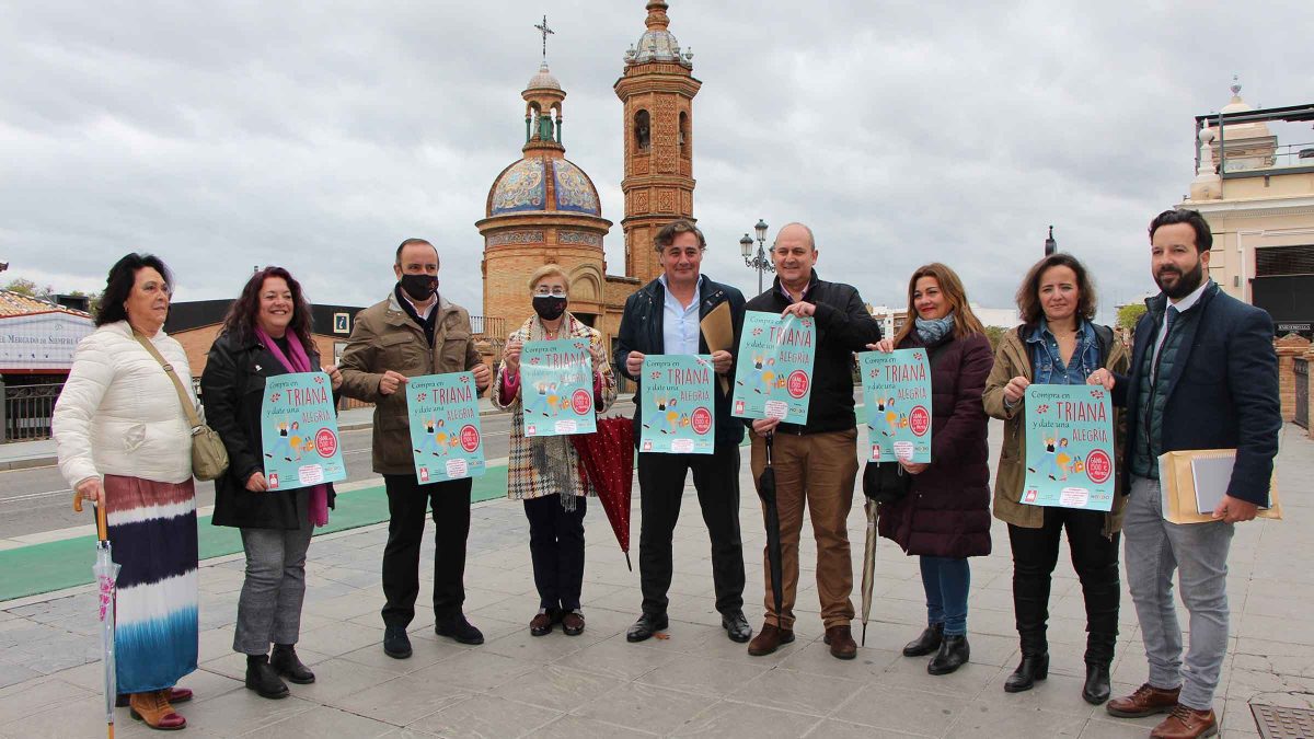 El Ayuntamiento de Sevilla, a través de la Delegación de Economía, Comercio y Turismo, ha presentado hoy, junto a la Asociación de Comerciantes de Triana y a propio Distrito, la campaña «Compra en Triana y date una alegría», que tiene como objetivo incentivar el consumo en el barrio y que se enmarca en la estrategia municipal de apoyo al comercio de proximidad, que ha supuesto en 2021 más de 230.000 euros en ayudas a asociaciones y federaciones de comerciantes para la realización de campañas de difusión de su actividad comercial.