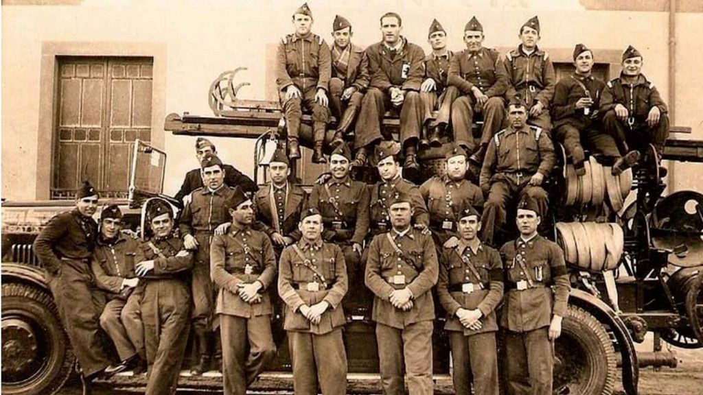 El cuerpo de bomberos de hace 100 años.