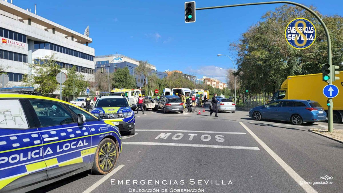 Poco antes de las 11:00 de la mañana varios vehículos se han visto implicados en un accidente múltiple en la Avenida de Jerez. El choque se ha producido entre un taxi, una ambulancia y un coche. En total seis personas han resultado heridas en el accidente y necesitaron el traslado al hospital.