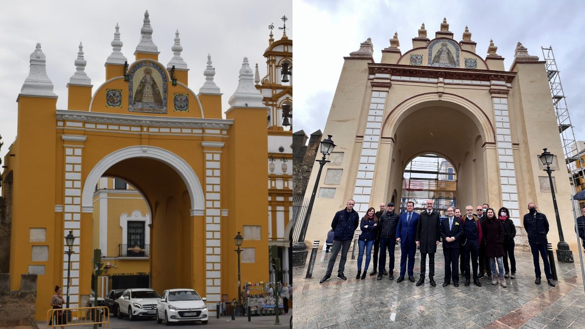 El Arco de la Macarena ha culminado su restauración, con una diferencia notable en el antes y después del desarrollo de la misma. El fuerte color albero que bañaba esta emblemática puerta de la muralla que rodeaba el casco antiguo se ha tornado en un ocre que más cercano al color original que presentaba.