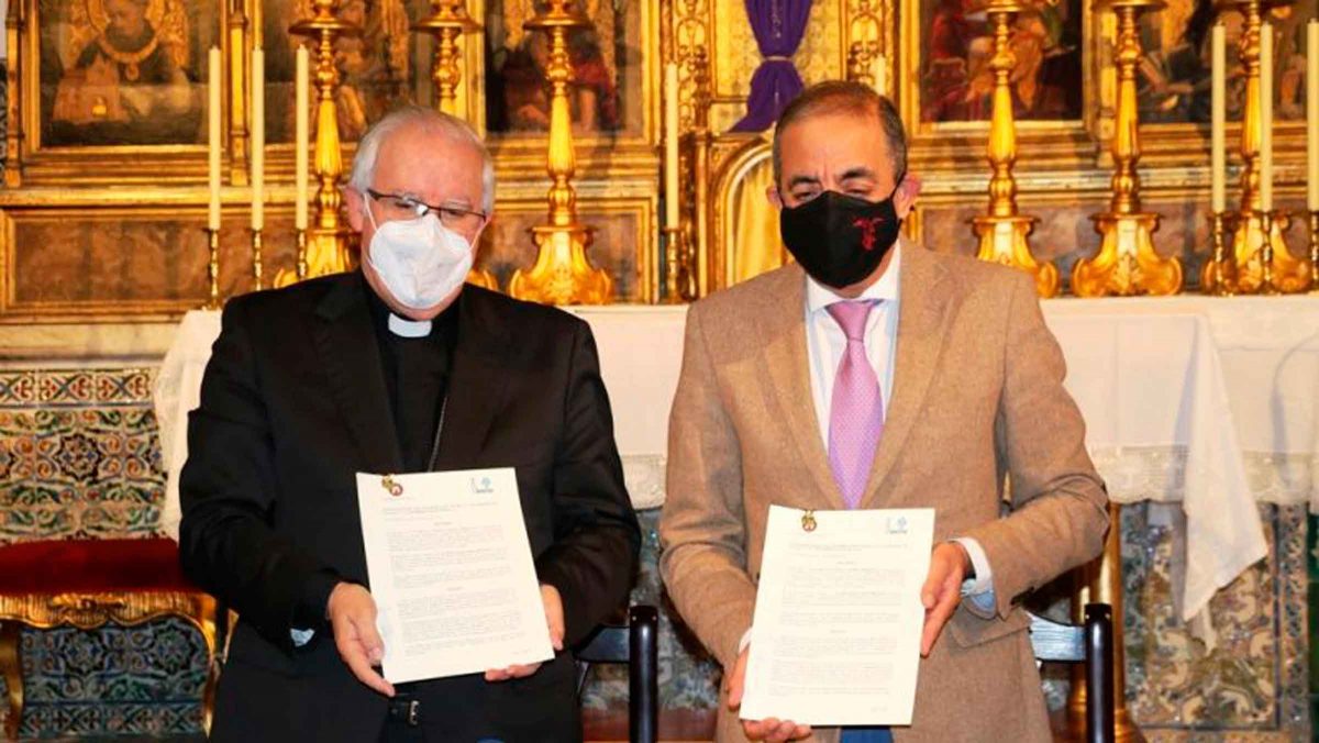 El rector de la Universidad de Sevilla (US), Miguel Ángel Castro, y el arzobispo de Sevilla, José Ángel Saiz, han firmado un convenio marco de colaboración en la capilla de Santa María de Jesús que permitirá que la Archidiócesis facilite el acceso a sus bienes culturales con el fin de promover la actividad docente, investigadora y cultural de la US y de su comunidad universitaria.