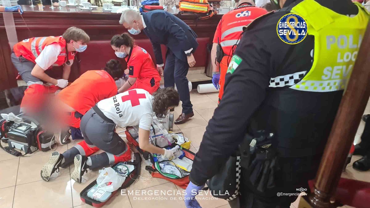 Un equipo de sanitarios de Cruz Roja, junto a Protección Civil y la Policía Local de Sevilla han conseguido reanimarlo y estabilizarlo con el uso de la maniobra de reanimación y un desfibrilador. Tras ello, el hombre que ha sufrido el infarto en Sierpes ha sido trasladado a un hospital para su estabilización.