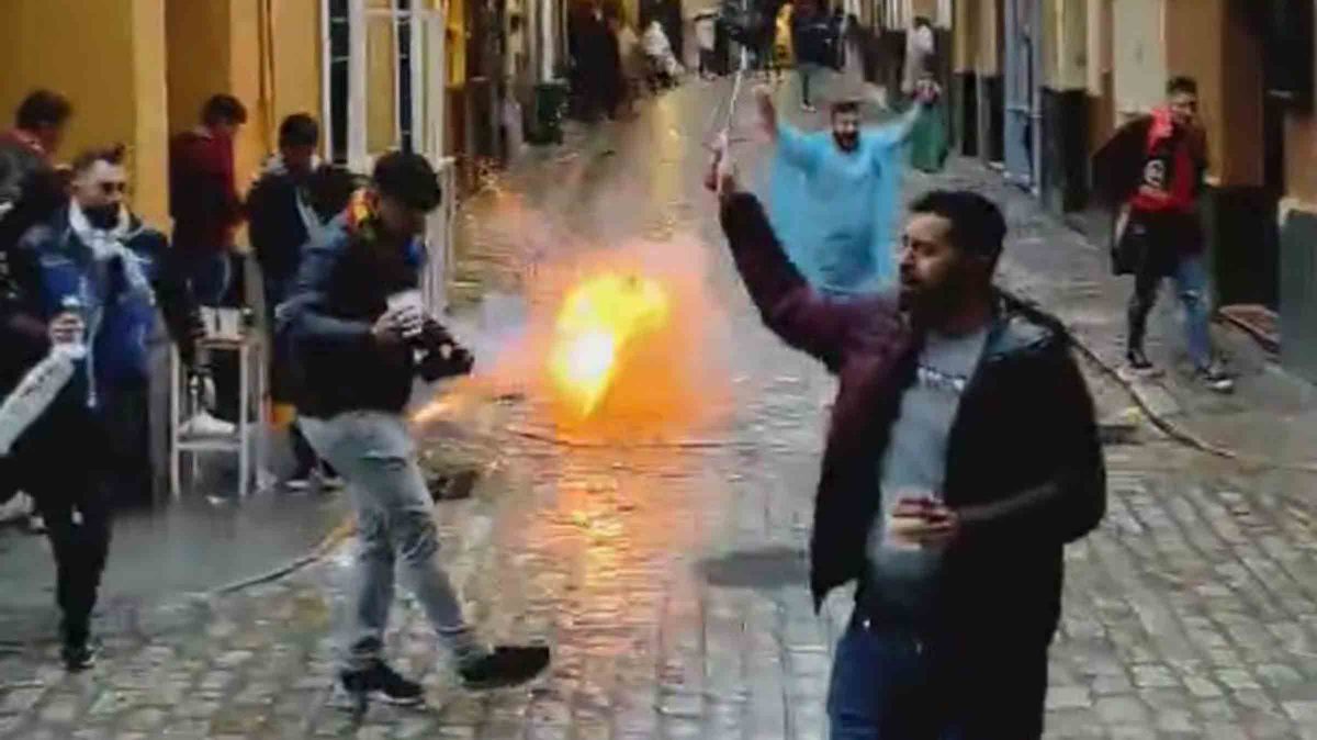 El momento culmen fue la explosión de petardos de gran calibre en calles del centro, estrechas, y con viviendas y comercios muy cerca. Portando bebidas alcohólicas y rodeados de banderas del equipo, cantaban al unísono mientras los explosivos estallaban con fuerza, tal y como se puede ver en los vídeos compartidos por el dueño del establecimiento que tuvo que cerrar este viernes en el centro.
