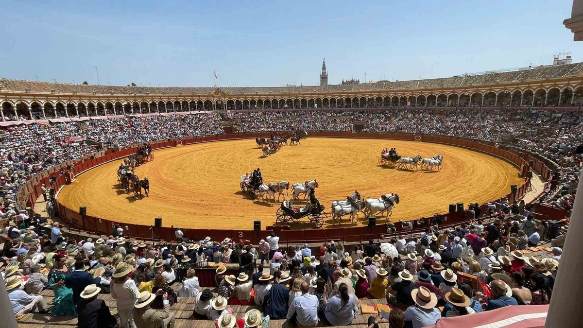La Real Maestranza de Caballería se ha llenado de enganches y de público en esta mañana de Feria donde nadie ha querido perderse el espectáculo de la XXXVI Exhibición de Enganches. Todo un éxito de público y participación, con la plaza abarrotada y con unos 77 carruajes participando de un nivel excepcional.