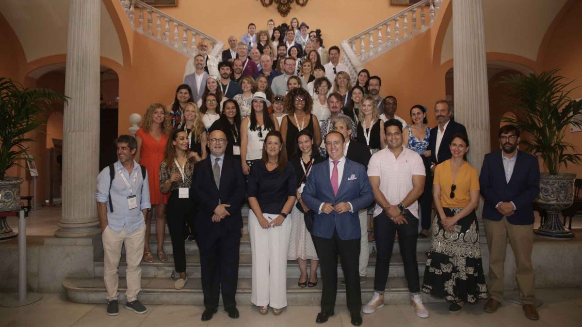 La teniente Alcalde de Sevilla, Sonia Gaya, el Presidente de la Junta de Andalucía, Juanma Moreno, y el presidente de Spain Film Commission, Carlos Rosado, han recibido hoy en Sevilla a una misión inversa de formación, en la que participan cerca de 40 productores pertenecientes a compañías socias de la Motion Picture Association (MPA) de Estados Unidos y otras plataformas y empresas audiovisuales estadounidenses de máximo nivel.