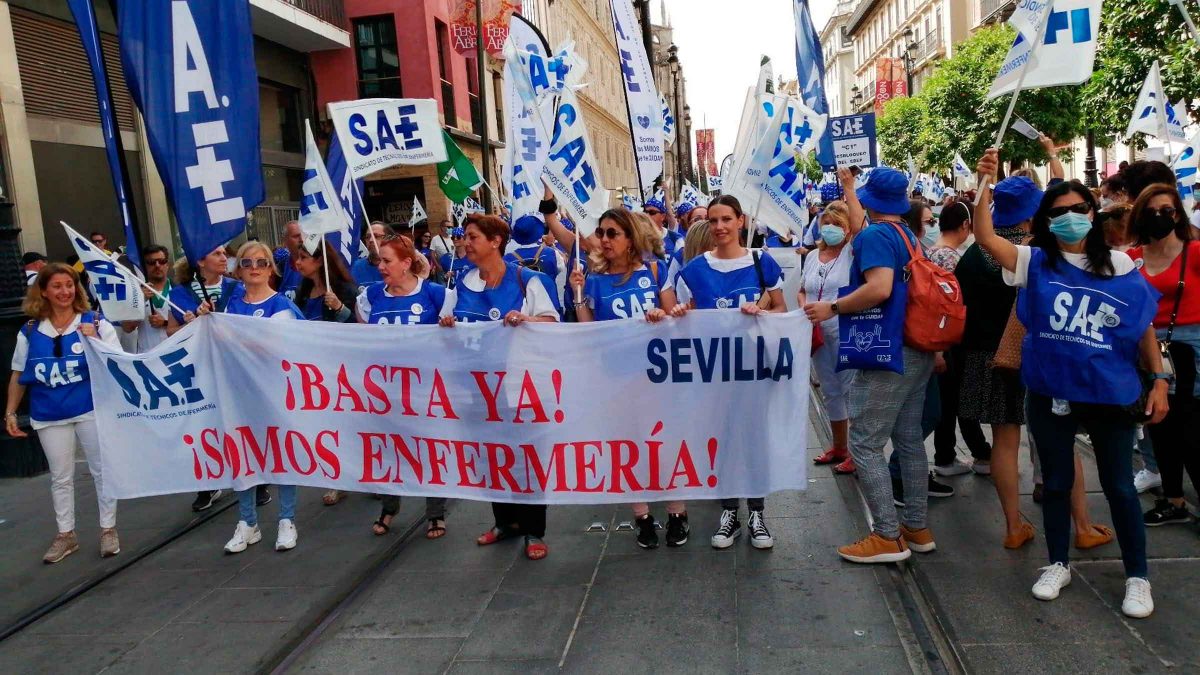 El Sindicato de Técnicos de Enfermería (SAE), junto a 1500 profesionales Técnicos Sanitarios y la Plataforma Unidad por C1 Andalucía, se ha manifestado esta mañana en Sevilla reivindicando un mayor compromiso de la Administración con el reconocimiento de su profesión, mayor visibilidad y la adopción de mejoras laborales para todos los colectivos del SAS, no solo para los mismos profesionales de siempre.