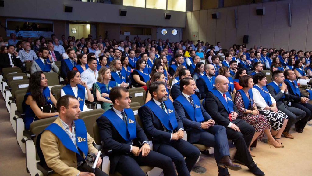 La intervención de clausura del acto corrió a cargo de Eduardo Gómez Martín, presidente de ESIC, que profundizó en lo que significó el acto para los graduados, deteniéndose en tres ideas clave: «Quiero hablaros de tres tendencias que están definiendo nuestra vida: infoxicación y fin de la verdad, transformaciones en el mundo del trabajo, y crisis climática. Y todo esto, estáis a punto de convertirlo en nuevas oportunidades, porque habéis estudiado en una época compleja, y también transformadora. Sed felices, y enhorabuena por vuestra graduación».