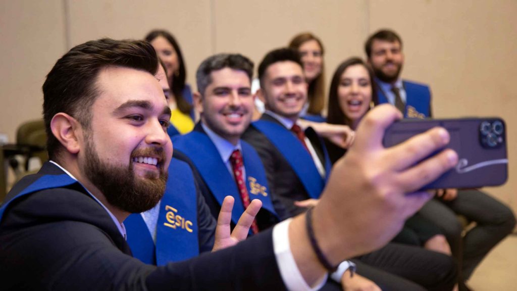 A continuación, el representante de los alumnos David Eduardo Cortés, pronunció un discurso en nombre de todos los graduados: «Queríamos tener un futuro mejor, y eso es lo que tendremos a partir de hoy». Agradeció a la escuela y a los profesores su papel y entrega, y recordando anécdotas y aprendizajes vividos. Después, los graduados se comprometieron en voz alta con el ‘Compromiso ético del alumnado de ESIC’: «Me comprometo de modo solemne, en este acto de graduación, a prestar con rigor profesional y honestidad personal, mis funciones al servicio de las empresas y de la sociedad, poniendo en ellas mis capacidades y conocimientos, y atendiendo a criterios éticos y deontológicos».
