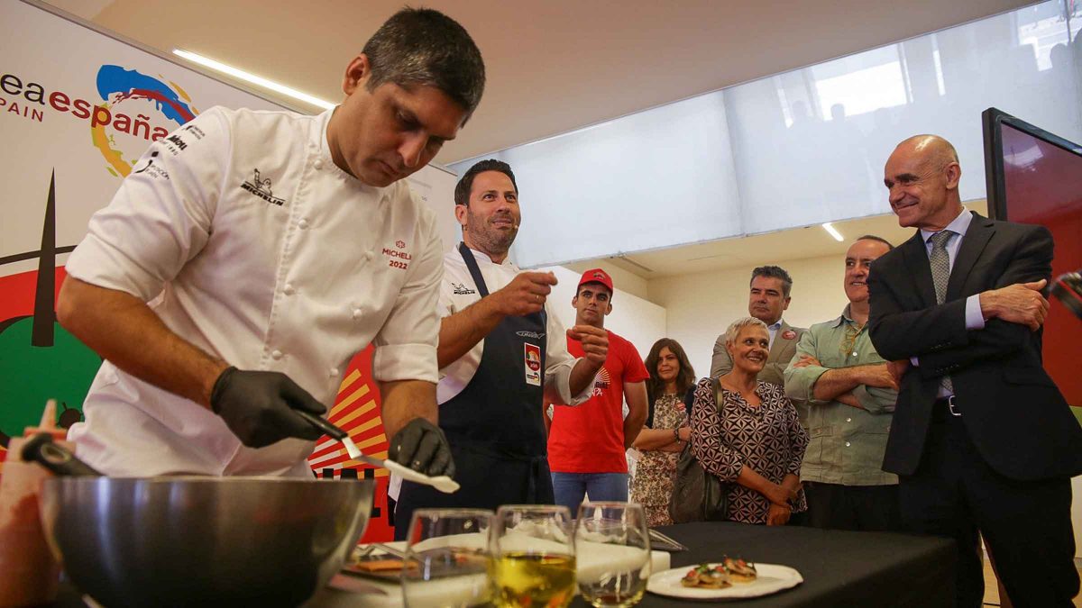 Por último, el chef Estrella Michelín Juanlu Fernández, fundador del restaurante Cañabota, ha ofrecido un «showcooking», mostrando in situ el cocinado de varias tapas, que han consistido en croquetas de ortiguillas y espinacas y corvina con coliflor y mantequilla ahumada.