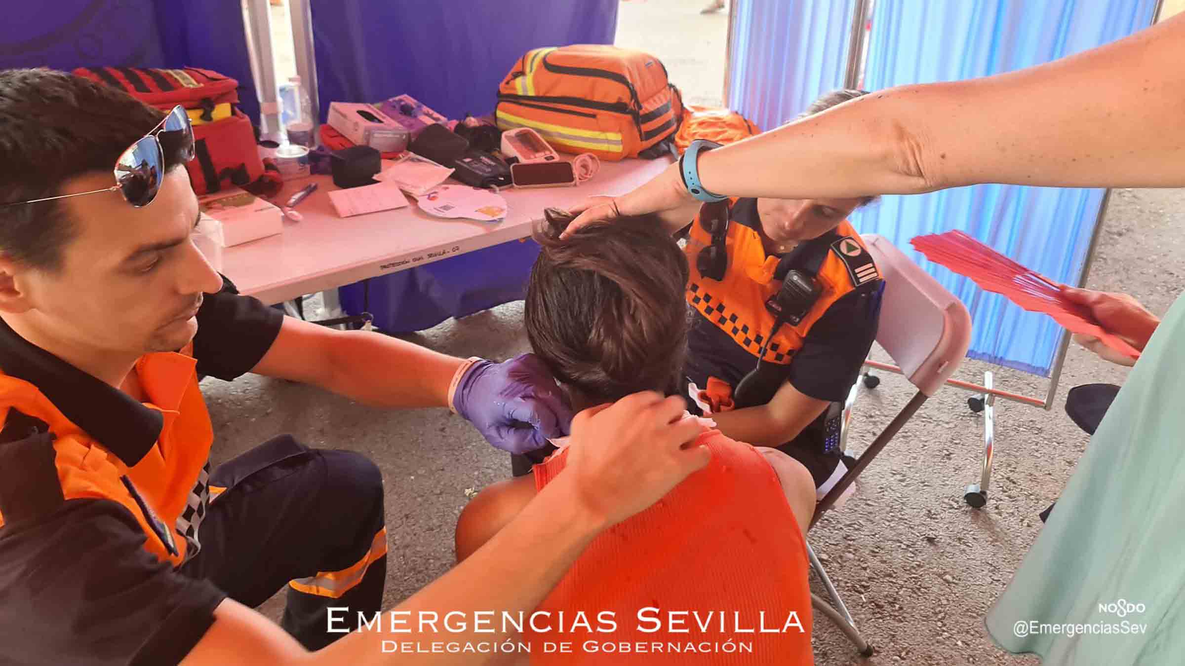 El dispositivo activado se ha desarrollado con normalidad, a pesar de los golpes de calor que han obligado a numerosos asistentes a acudir a los puestos del 061 de la Cartuja para recibir atención médica.